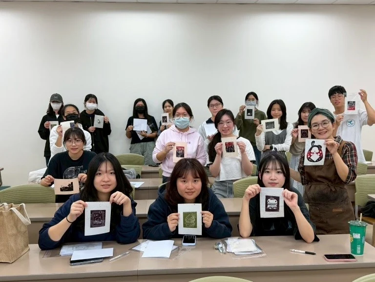 本次以「光影與質感」為主題的凸版印刷工作坊,透過傳統工藝的雕刻、上墨與壓印過程,培養學生對細節、節奏與視覺層次的敏銳度,讓學生理解凸版印刷的技法原理,更希望透過凹凸紋理與光影變化的觀察,強化學生在視覺構圖與風格呈現上的美感基礎。這些能力與數位時代的美術設計、社群行銷素材製作息息相關,能幫助學生在未來製作海報、貼文圖、短影音封面或品牌風格視覺時,更能掌握光影、留白、線條與質感的運用。