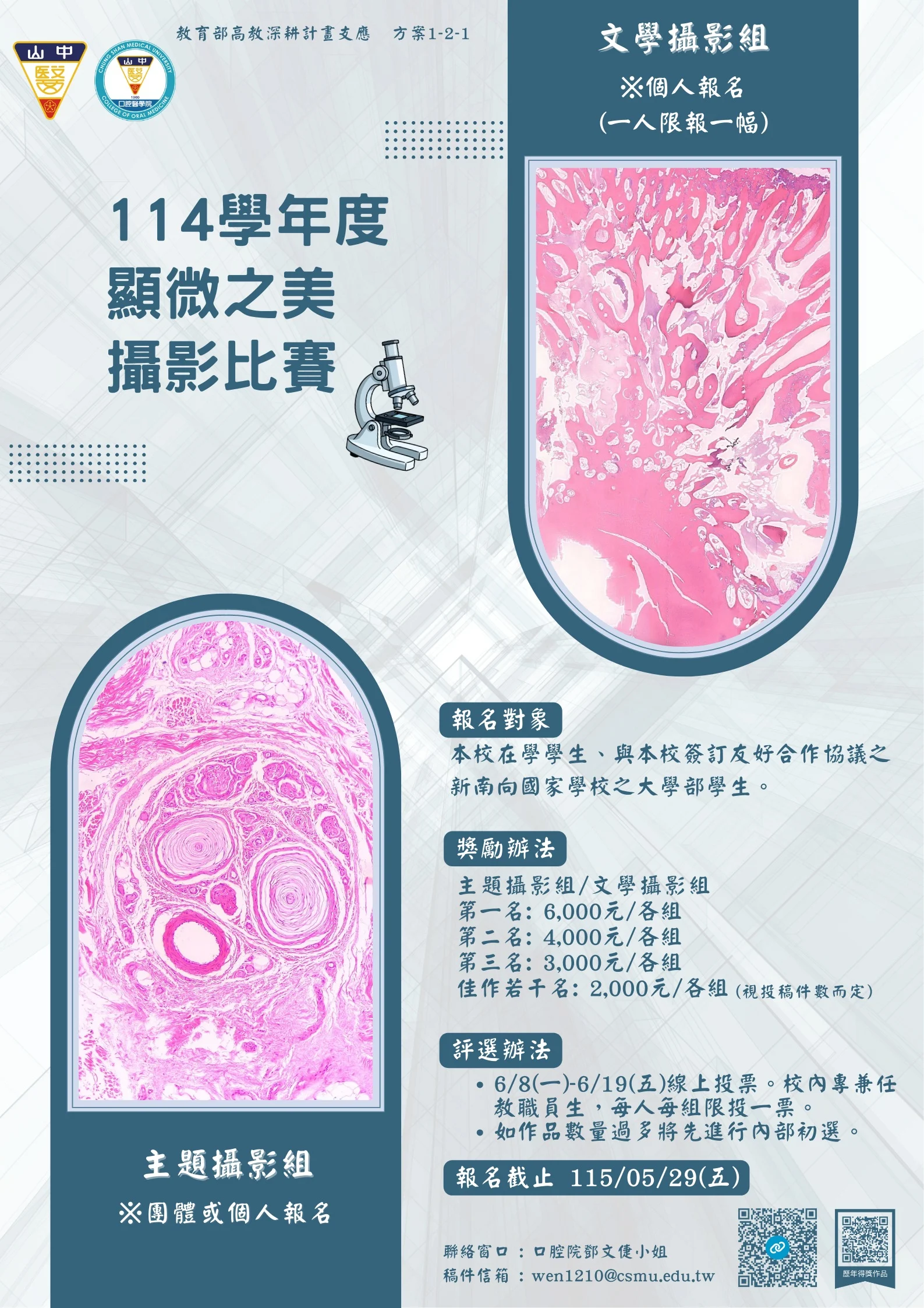 了解更多114學年度「顯微之美」顯微鏡攝影競賽